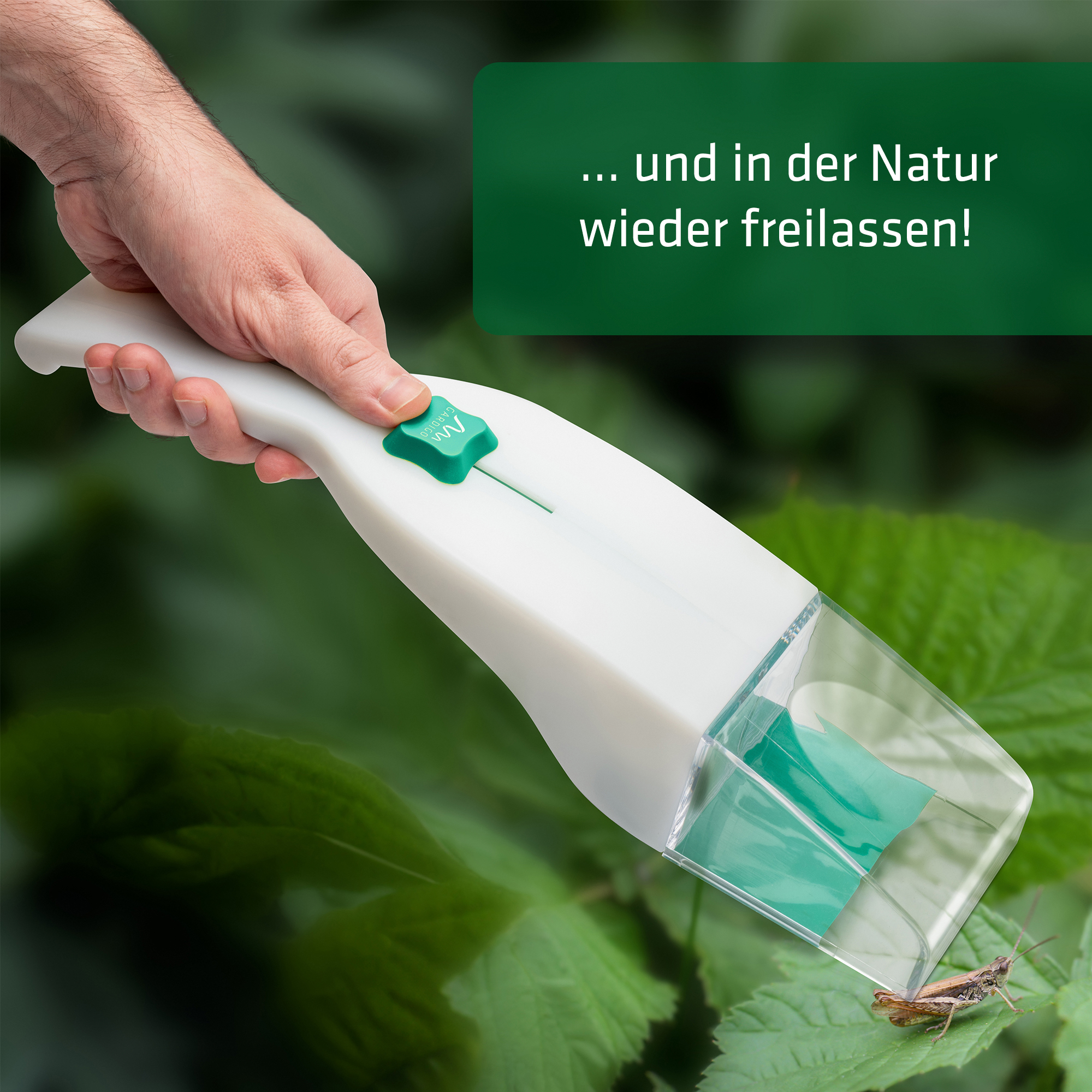 L’utilisation est simple : placez la cloche au-dessus de l’insecte, puis faites coulisser le volet pour le piéger. Une fois dehors, ouvrez simplement pour libérer l’animal dans son habitat naturel.